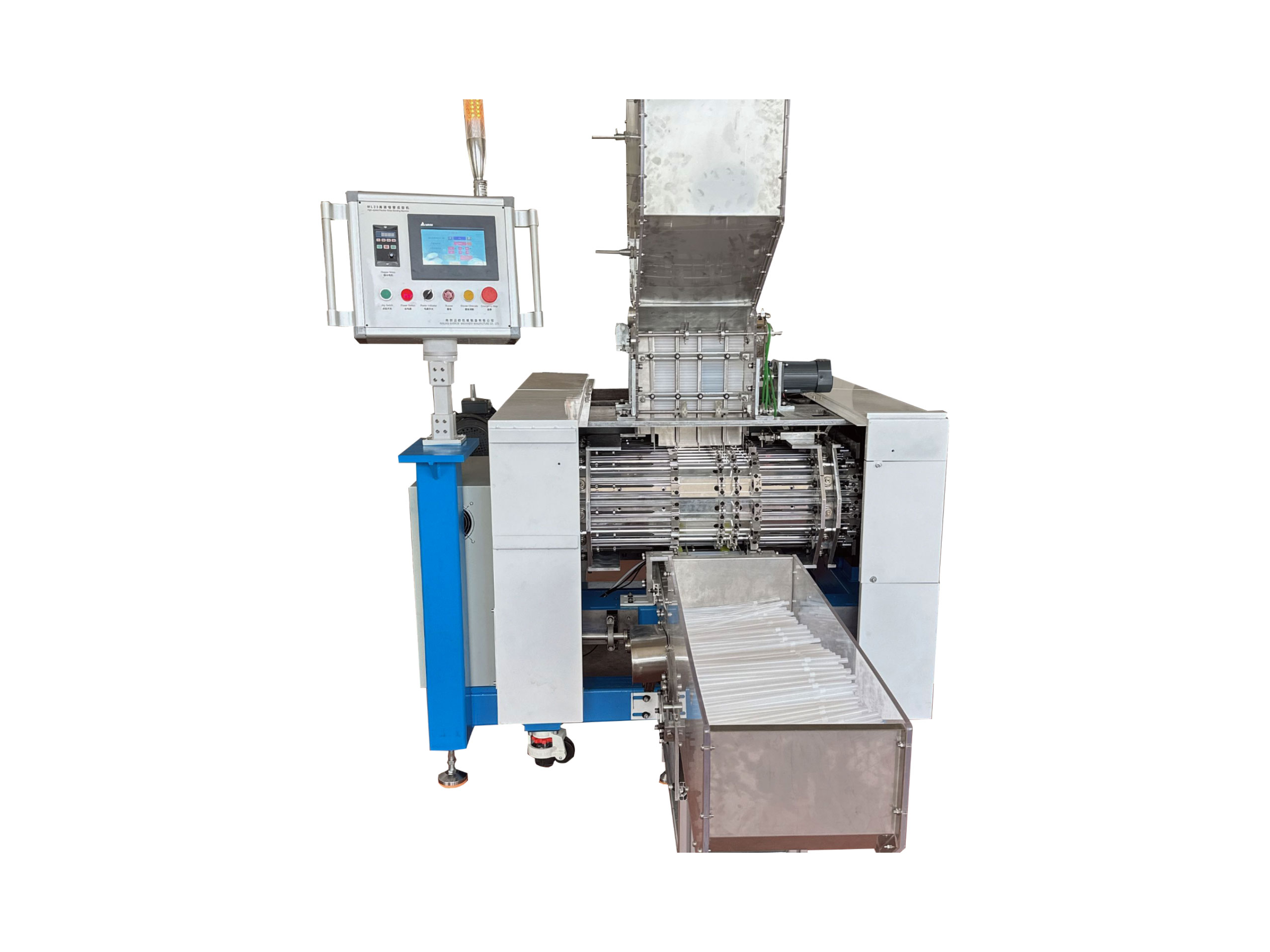 ML23系列全自動(dòng)可彎吸管成形機(jī)是將直管坯加工成可彎吸管的一種自動(dòng)化設(shè)備。 直管坯加入成形機(jī)上部料斗,經(jīng)45組成形牙針和1對(duì)成形牙輪連續(xù)動(dòng)作后將彎管成品自動(dòng)輸送出來,具有連續(xù)高效生產(chǎn)的能力。通過更換部分零件,可以實(shí)現(xiàn)多種孔徑規(guī)格彎管的生產(chǎn)。